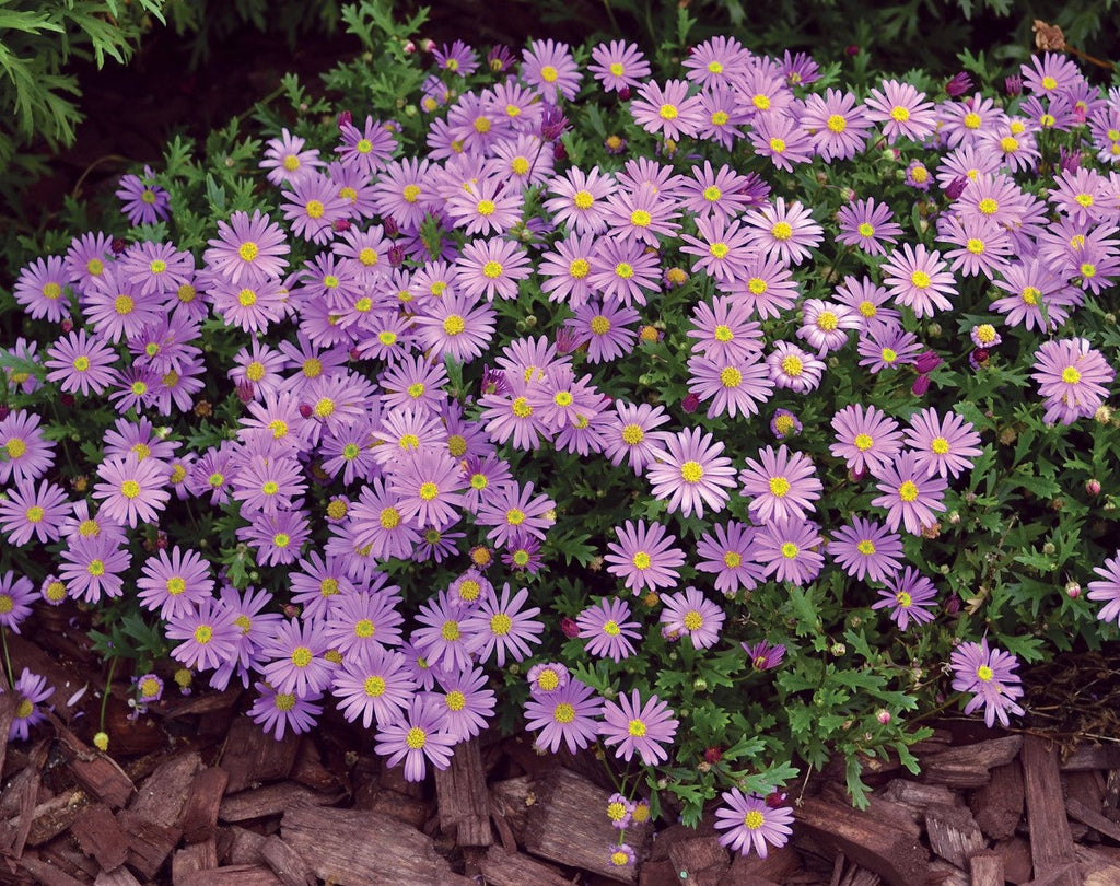"Brasco Violet", a cultivar of Brachyscome angustifolia (Swan River Daisy), is celebrated for its delicate light mauve-pink flowers. Native to Western Australia, this perennial dazzles gardens with its radiant blossoms, inviting a touch of beauty to any setting. Whether positioned as a lively border, a container focal point, or a vibrant ground cover, "Brasco Violet" complements diverse garden designs with its charming presence.
