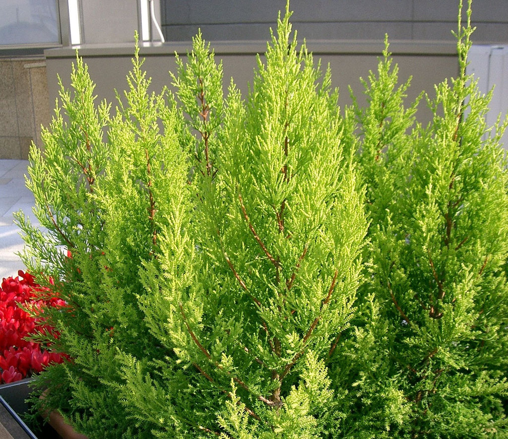 The Lemon Cypress (Hesperocyparis macrocarpa, syn. Cupressus macrocarpa var. lutea) is a striking, conical conifer with bright yellow-green foliage and a refreshing lemon scent, often used in Perth as a living Christmas tree. Its vibrant colour and tidy shape make it a perfect festive feature that can transition back into a pot or garden after the holiday season, continuing to thrive as a beautiful evergreen.