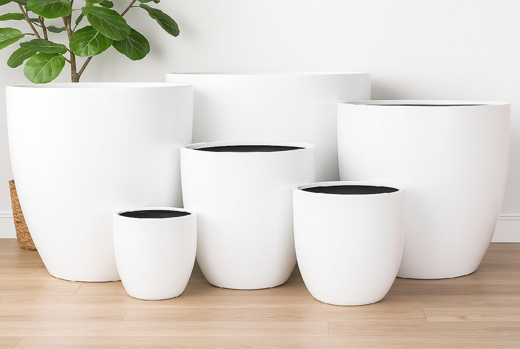 Sleek and durable, these fibreglass egg pots feature ultra-thin yet incredibly strong walls, making them the lightest fibreglass pots we’ve ever stocked for their size. Their modern shape and smooth finish suit both indoor and outdoor spaces, and they can be used either as decorative cover pots or planted directly into.