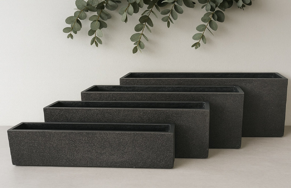 Huge Rectangle Fibrecrete Pot - Terrazzo Black