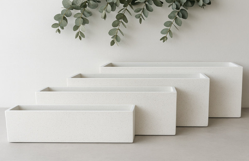 Huge Rectangle Fibrecrete Pot - Terrazzo White